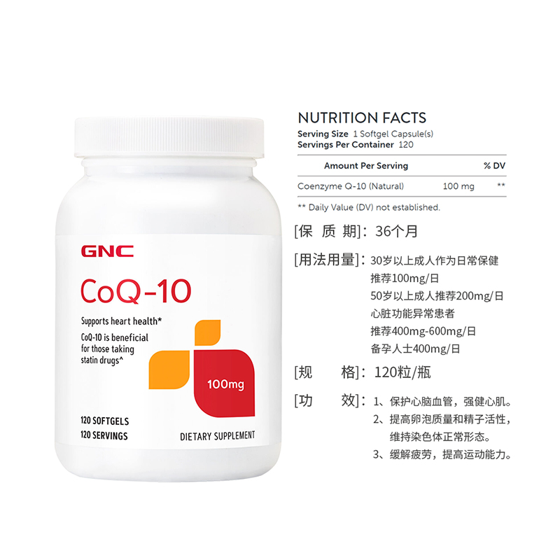美国GNC輔酶Q10軟膠囊100mg 120粒