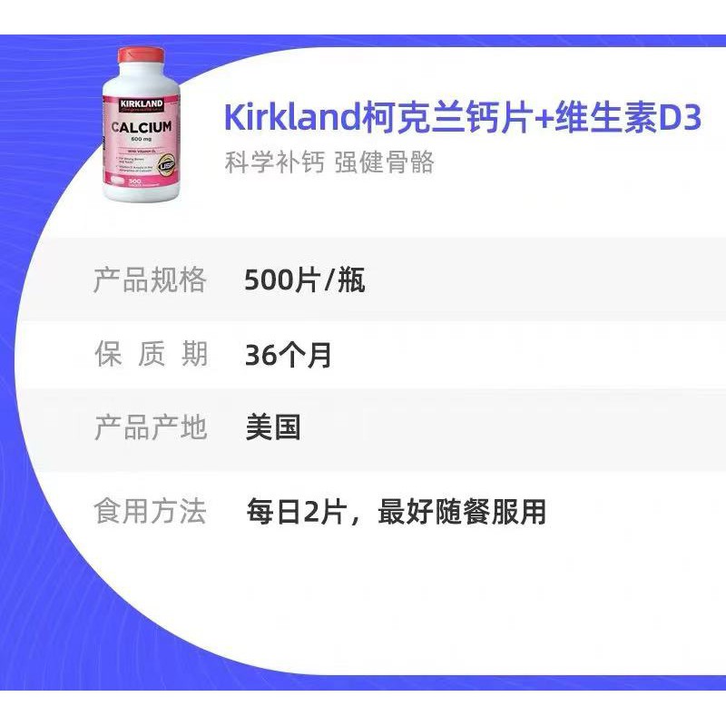 美国Kirkland Signature維生素D3 500粒