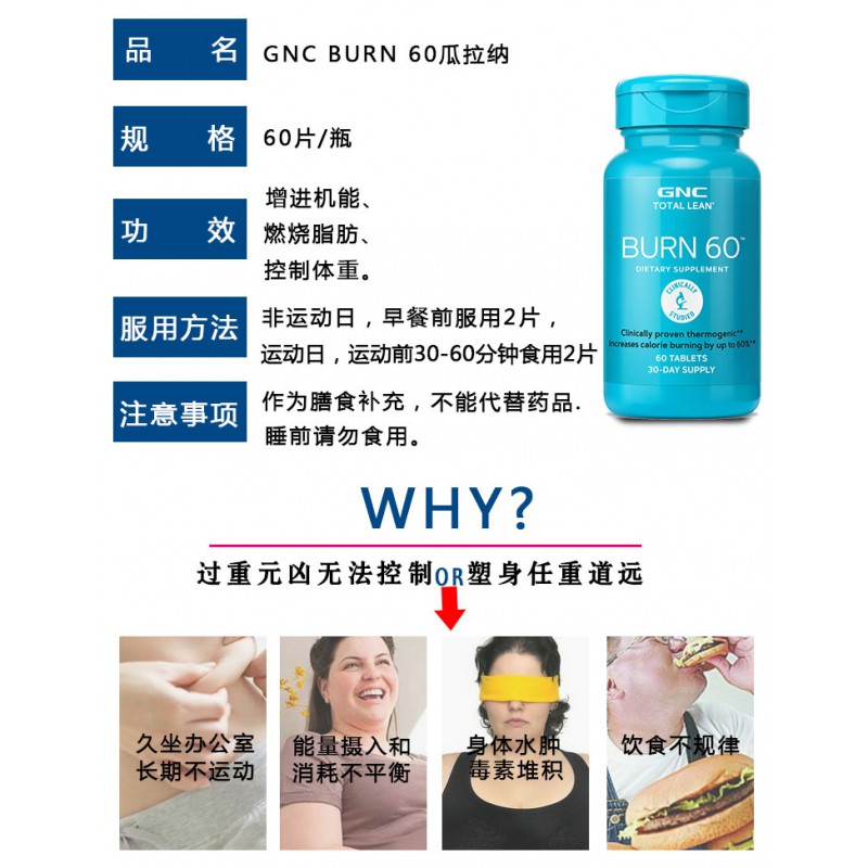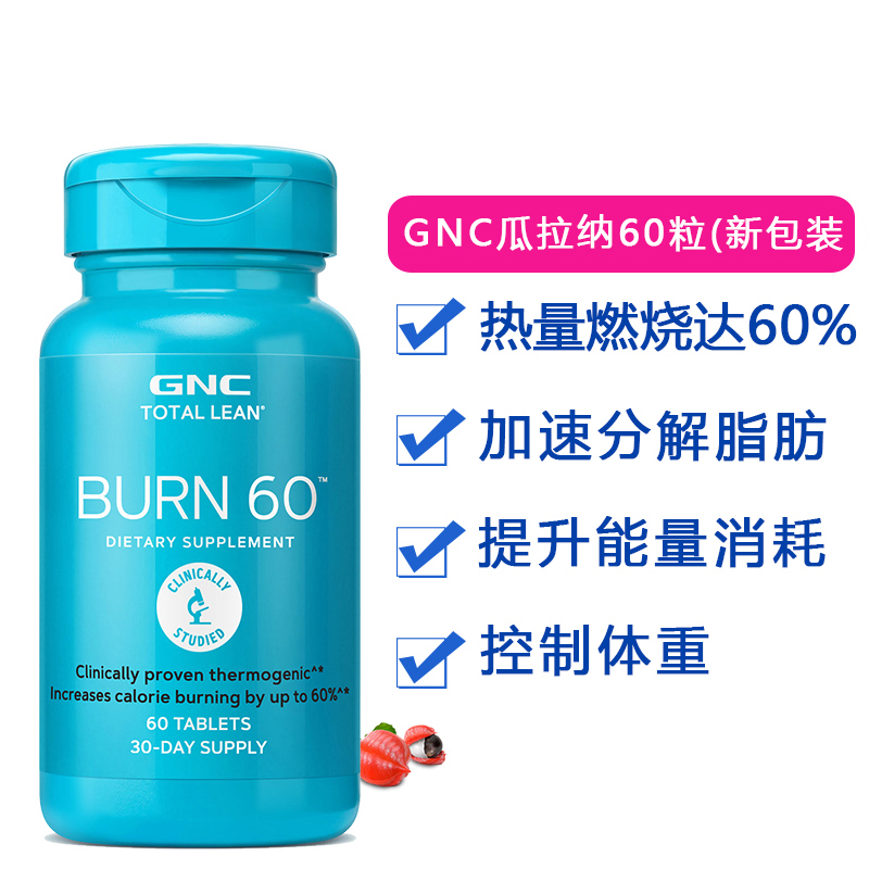 美国GNC BURN60燃燒脂肪瓜拉納片*60粒