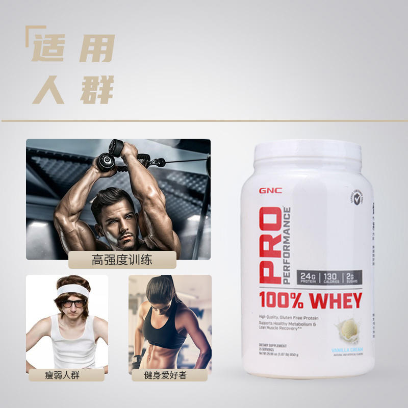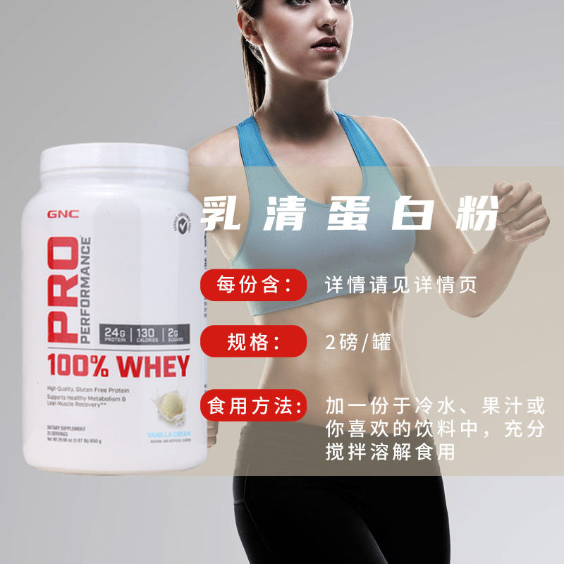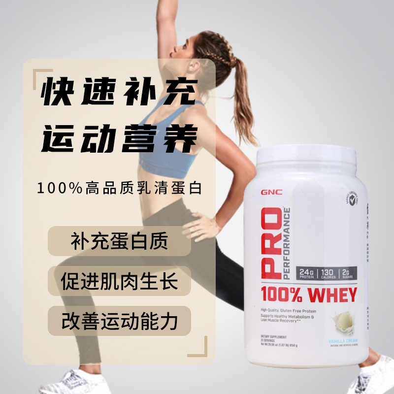 美国GNC乳清蛋白粉 香草味 健身增肌粉850G