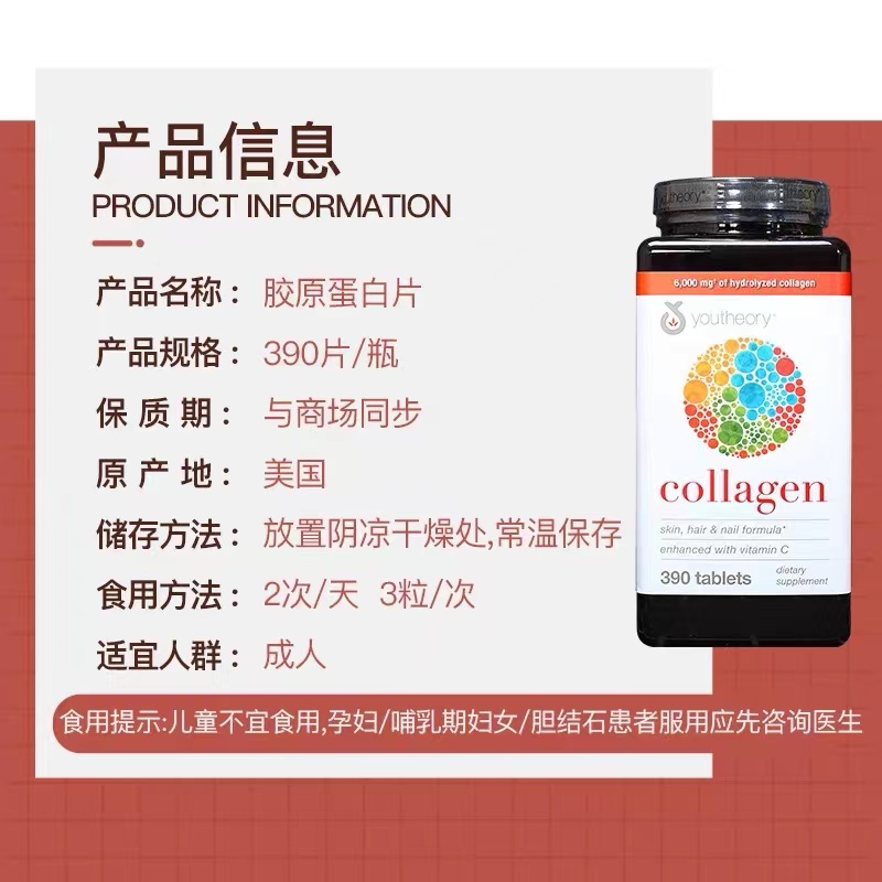美国YOUTHEORY高級膠原蛋白含18種氨基酸390粒