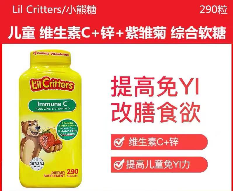 美国LIL CRITTERS小熊维生素C+锌+D软糖290粒