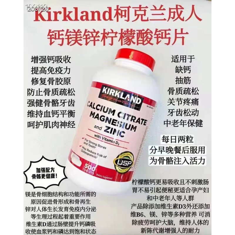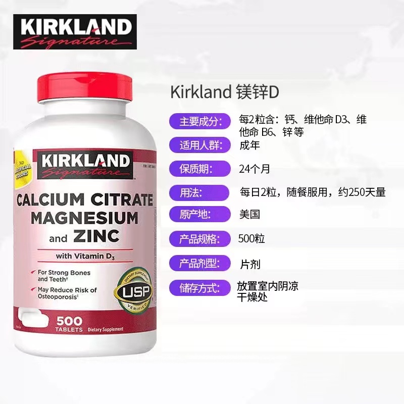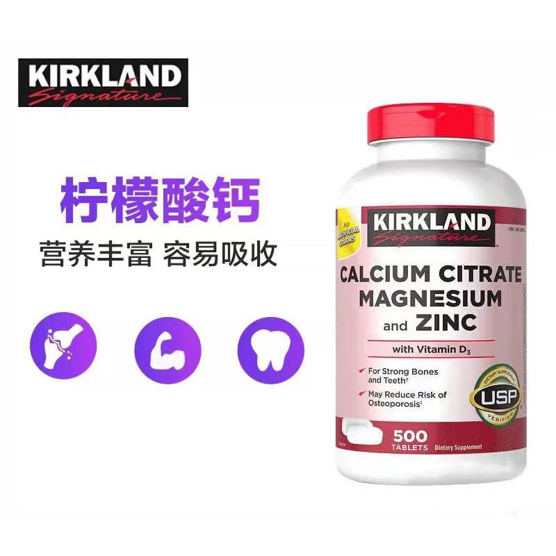 美国Kirkland成人柠檬钙镁锌+D500粒