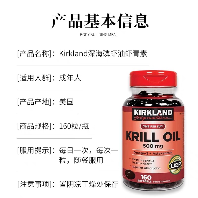 美國KIRKLAND磷蝦蝦油保護心腦血管500MG 160粒