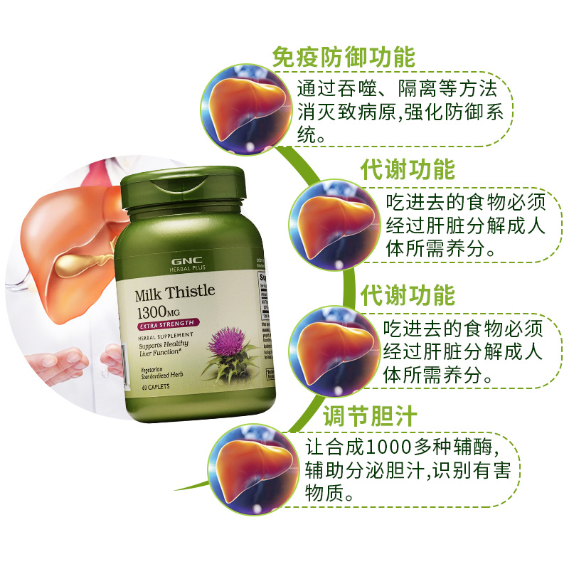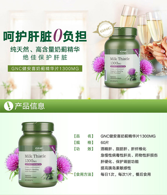美国GNC奶薊草護肝精華片1300MG60粒
