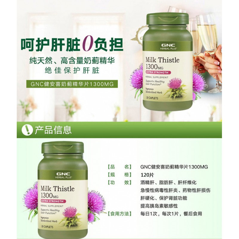美国GNC奶薊草護肝精華片1300MG 120粒