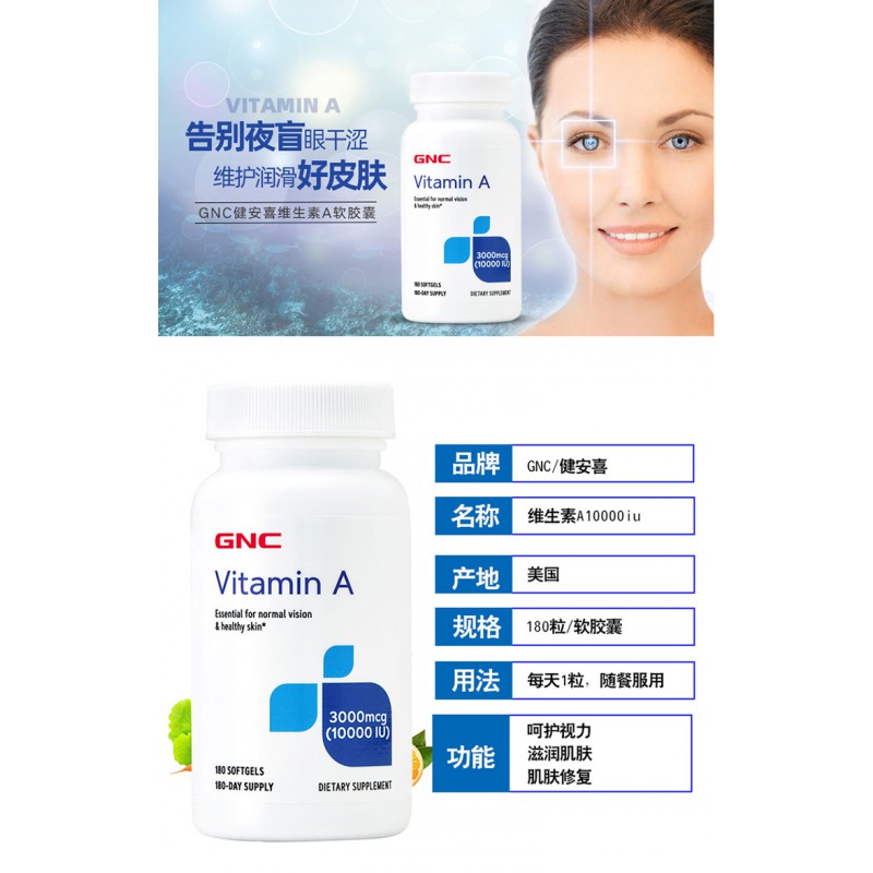 美国GNC维生素A護視力 180粒