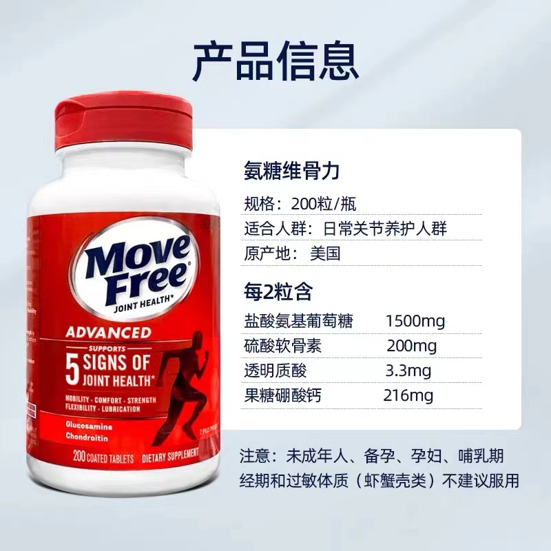 美国SCHIFF MOVEFREE 氨糖软骨素 200粒