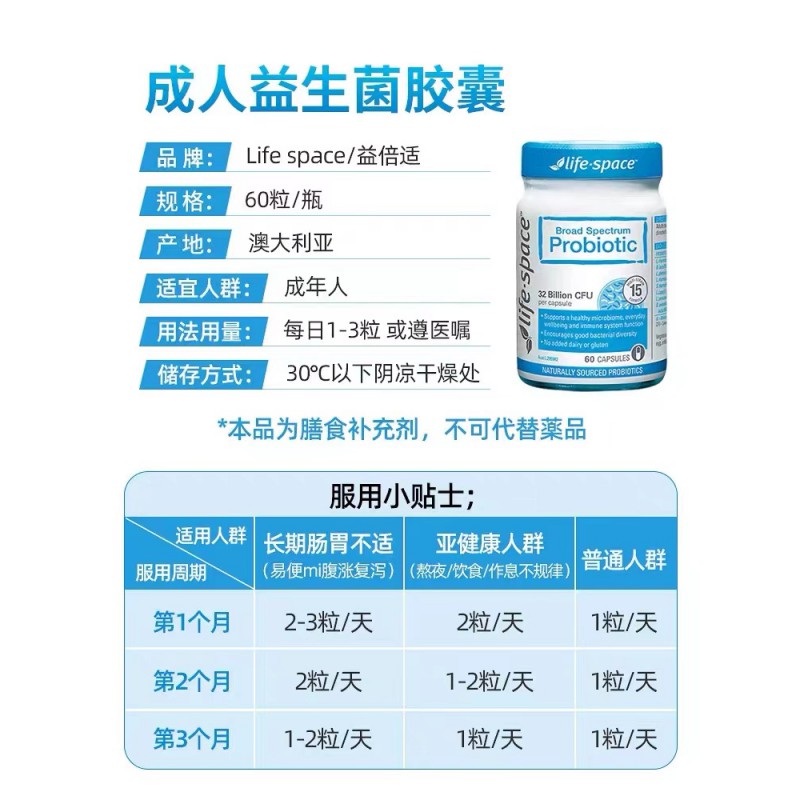 澳洲LIFE SPACE成人益生菌胶囊60粒