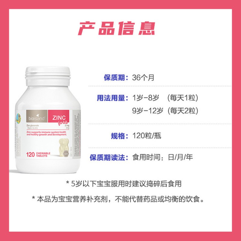 澳洲BIO ISLAND儿童 提高免疫補鋅120片