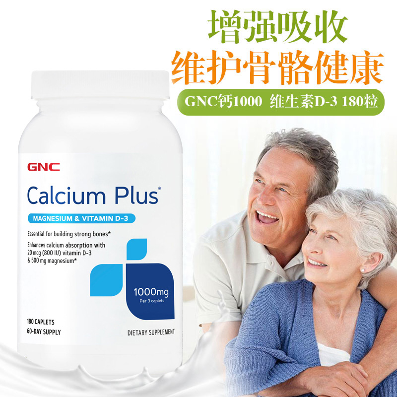 美国GNC PLUS1000鎂+D3 鈣片180粒