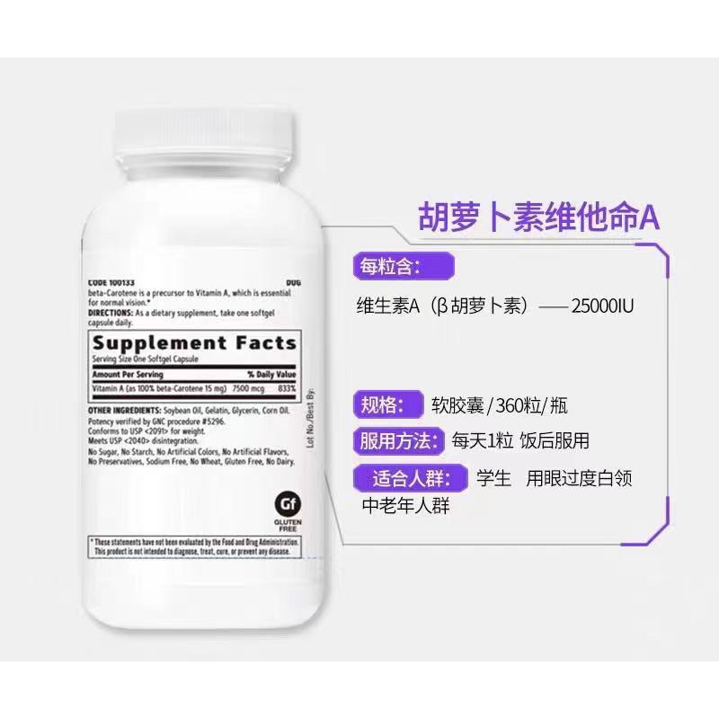美国GNC胡罗卜素360粒