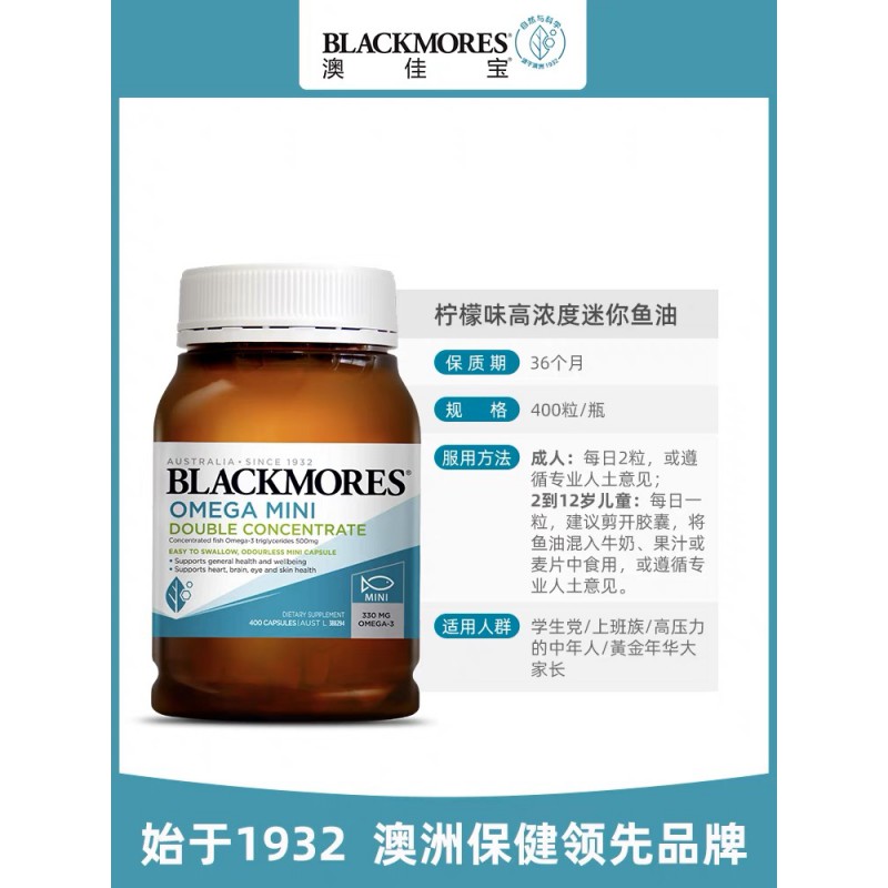 澳洲BLACKMORES无腥味小粒dha鱼油软胶囊欧米伽omega3 400粒