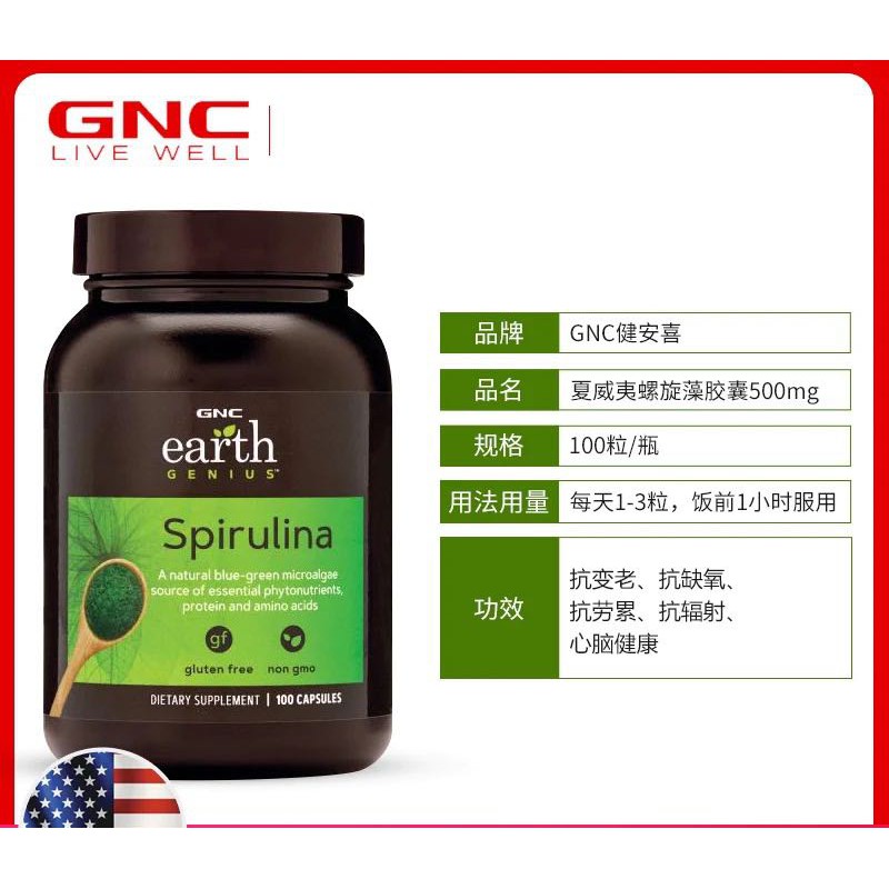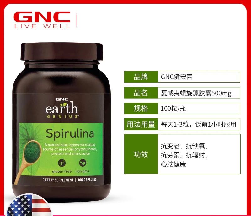 美國GNC SPIRULINE螺旋藻100粒